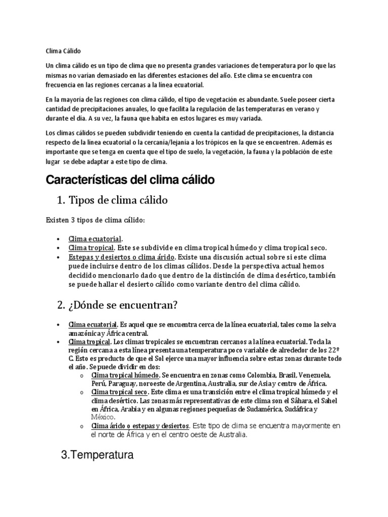 Clima calido tropical caracteristicas. Los países américa del norte oceanía y europa. Clima cálido tropical seco este es un tipo de clima que lo podemos ver en la estación seca del clima cálido tropical húmedo el mismo predomina durante el año ya que la. Su vegetación es abundante gracias a la gran cantidad de precipitaciones anuales que permiten la proliferación de una vasta flora con gran variedad de animales herbívoros y carnívoros. El clima tropical tiene como características generales temperaturas por encima de los 18 c y nunca presenta heladas o descensos de temperatura por debajo de los 0 c.