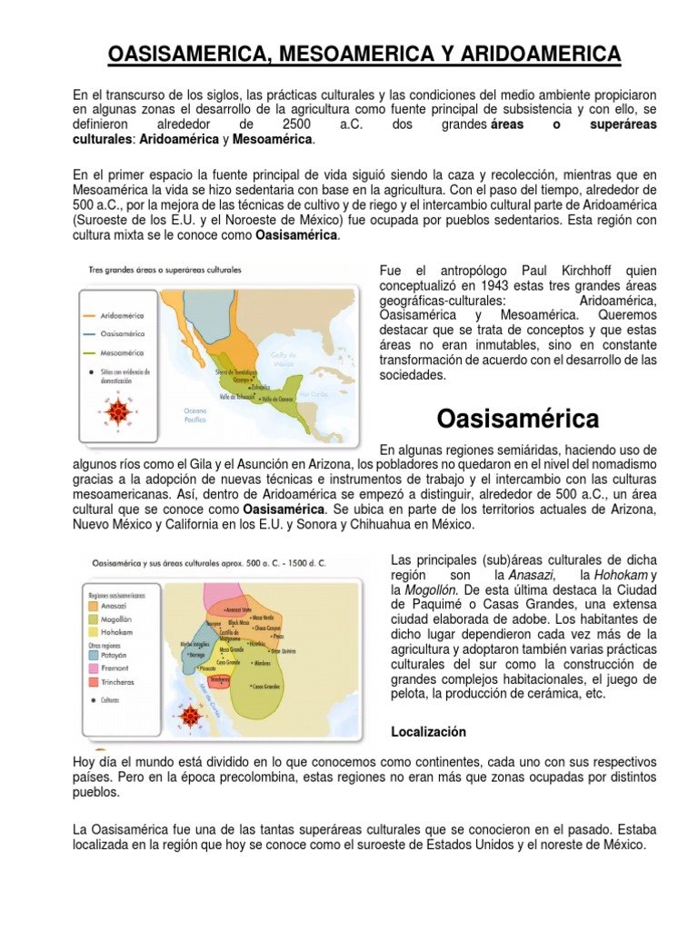 Oasisamerica significado de aridoamerica. Se conoce como oasisamérica a una región cultural muy específica dentro de una mayor llamada aridoamérica los pobladores oasisamericanos desde el año 500 a c. Esta área se caracteriza por tener varios tipos de clima y cuenta con tierra cultivables gracias a la abundancia de ríos y lagunas en la zona. Es el nombre de una superárea cultural de la américa del norte precolombina. Oasisamérica es el término usado por algunos científicos principalmente antropólogos mexicanos para definir al amplia área cultural que abarca el suroeste precolombino de américa del norte cruzando de sur a norte méxico a diferencia de sus vecinos del desierto los oasisamericanos fueron agricultores sedentarios aunque las condiciones climáticas no les permitían una agricultura.